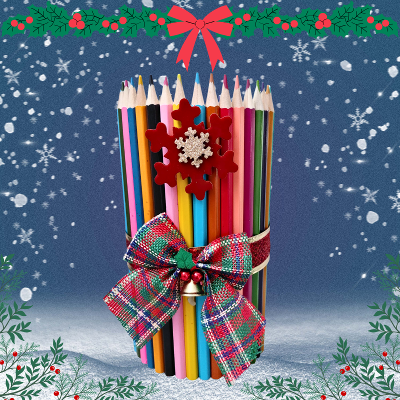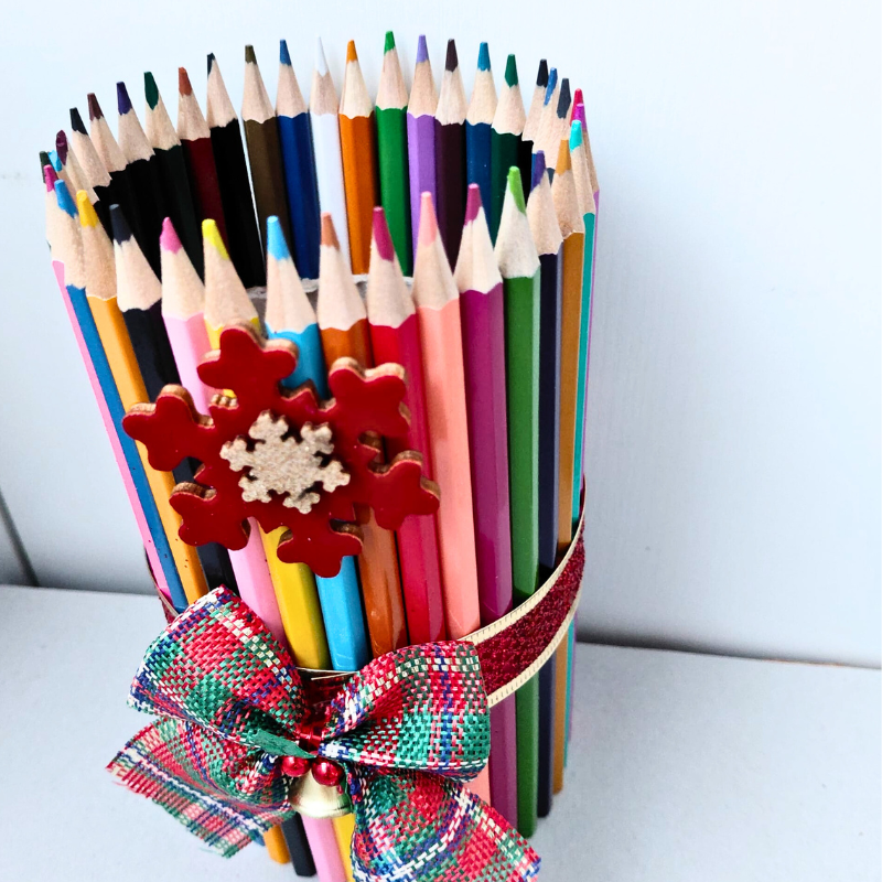 Cutia noastră, realizată din creioane colorate este alegerea perfectă pentru a crea un aranjament floral unic de Crăciun sau pentru a oferi un cadou creativ profesorilor și celor dragi.