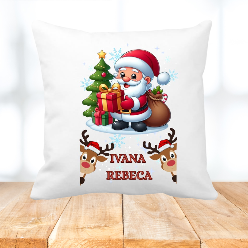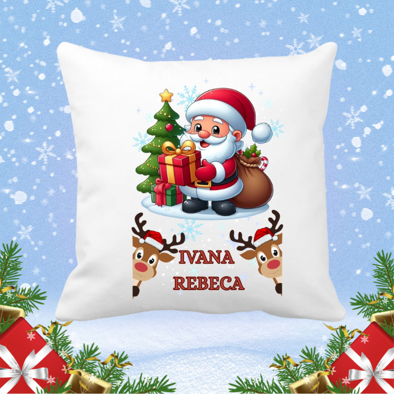 Adaugă un plus de farmec sărbătorilor cu această pernă decorativă de Crăciun, personalizată cu numele copilului!
