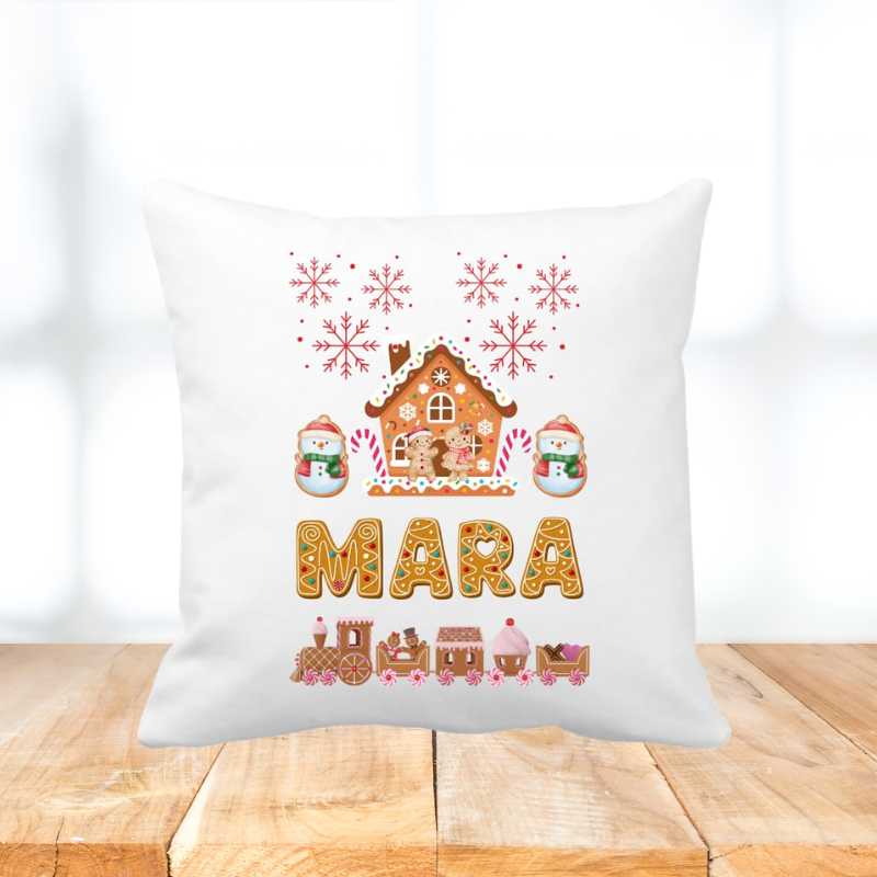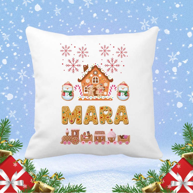 Adaugă un plus de farmec sărbătorilor cu această pernă decorativă de Crăciun, personalizată cu numele copilului!