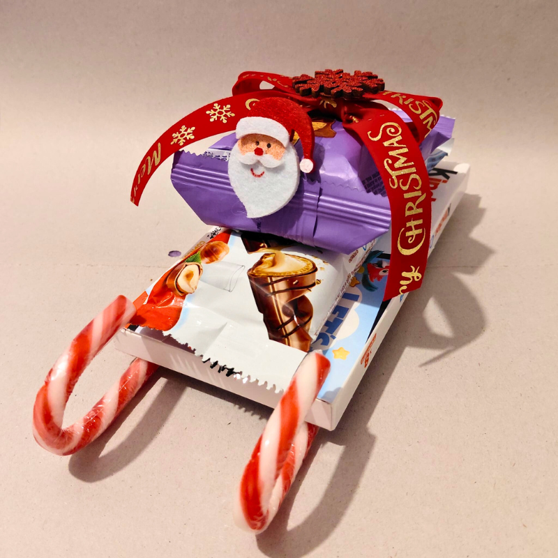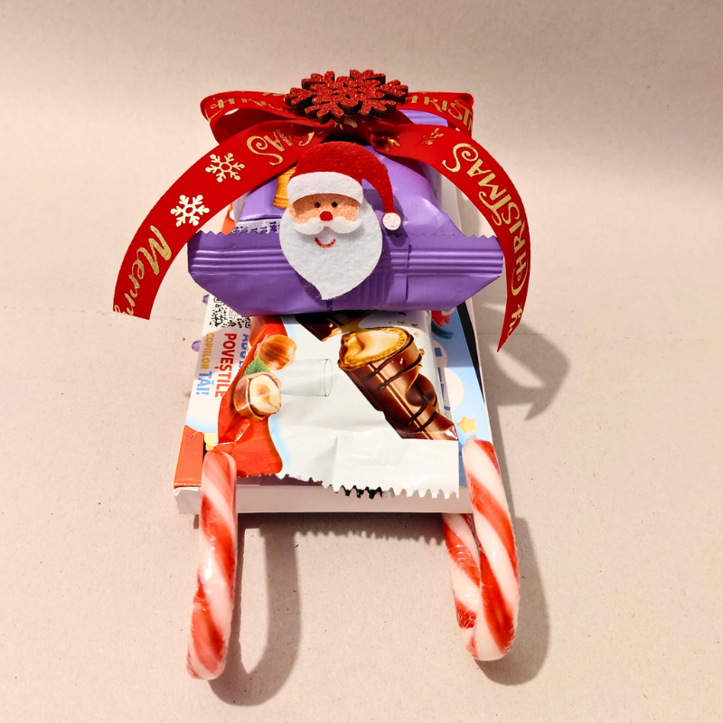 Descoperă săniuțele noastre din dulciuri, create manual cu grijă și imaginație.  Perfecte pentru Moș Nicolae, Moș Crăciun, serbări sau grădinița.
